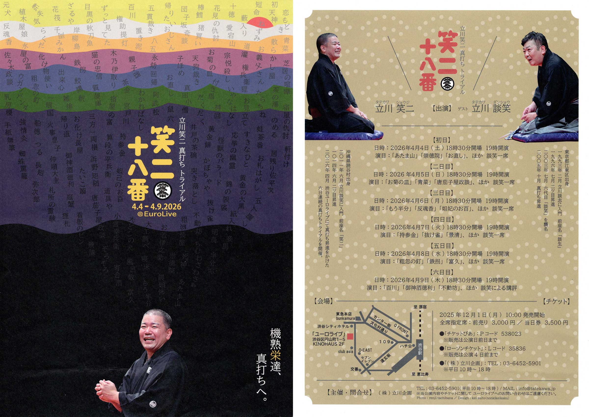 落語立川流二ツ目 立川笑二の情報をお伝えします