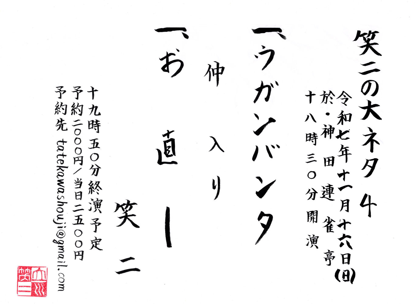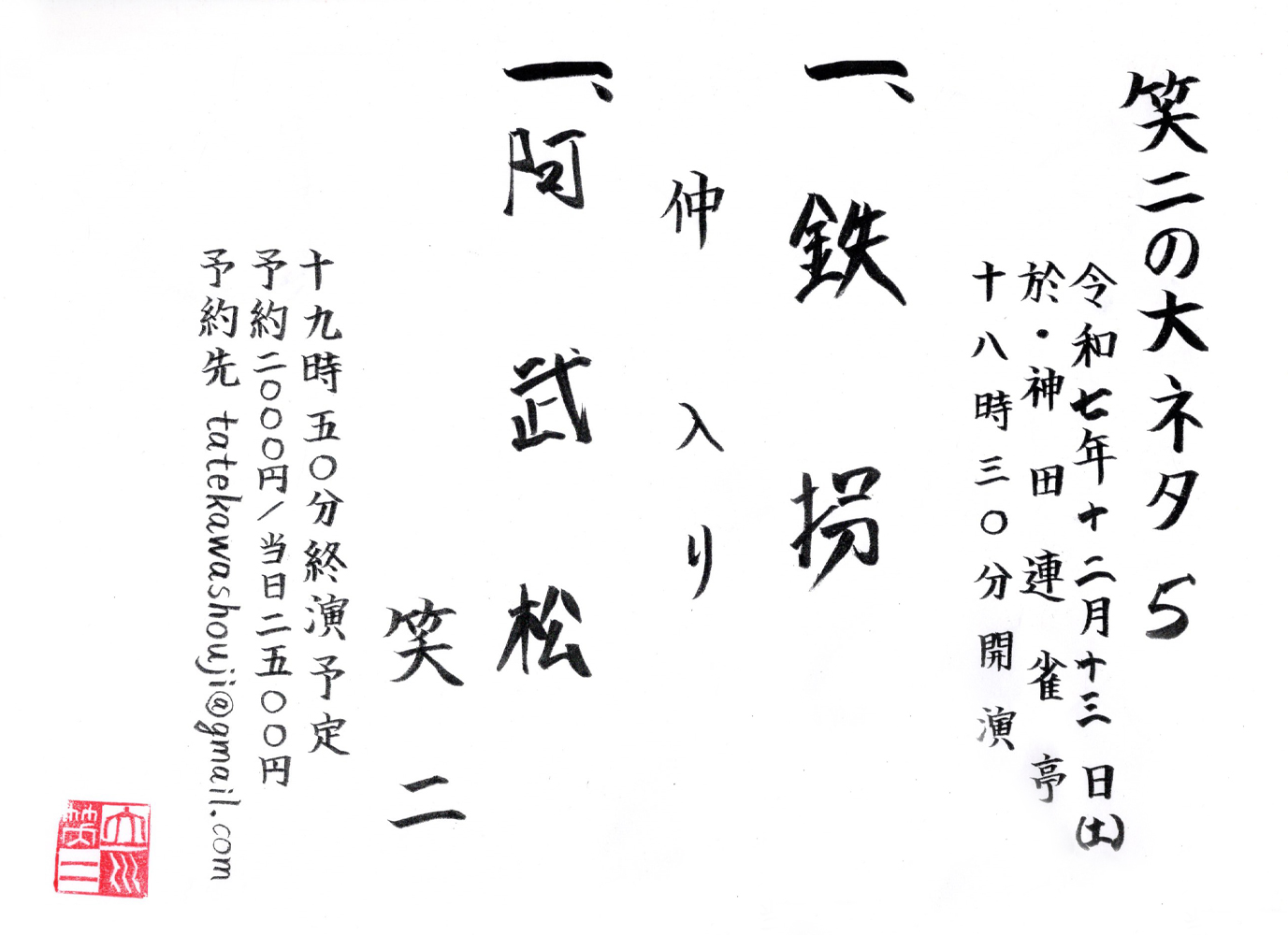 出演:立川笑二「算段の平兵衛」「突き落とし」他