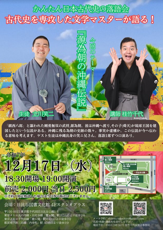 「かんたん日本古代史の落語会〜源為朝の沖縄伝説編!」